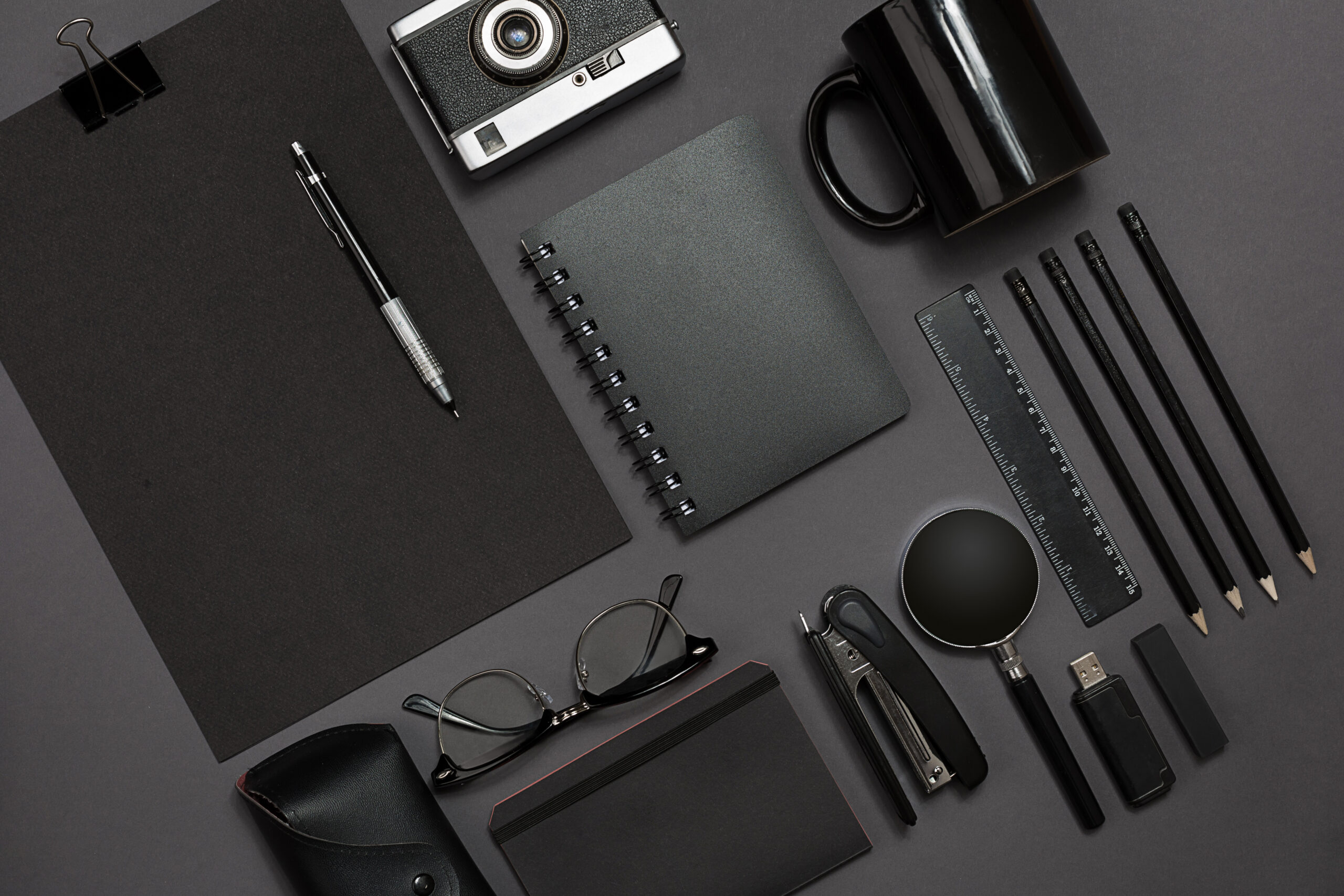 Notebooks, pens, USB drives, and desk accessories